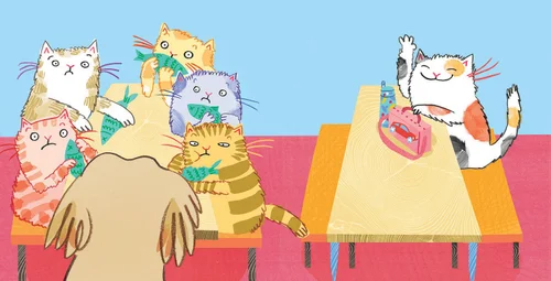 Charlie is excited about his first day at a new school, but when he gets there, he finds it full of cats! The difference is quite a shock for Charlie, who isn’t sure how to cope. How can he make new friends? He may find the answer he’s looking for in the library!